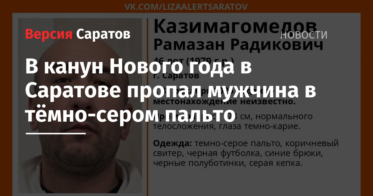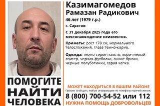 Волонтёры разыскивают пропавшего 46-летнего Рамазана Казимагомедова из Саратова. Как сообщили в поисковом отряде «„Лиза Алерт“ Саратовской области», с 31 декабря его местоположение неизвестно.