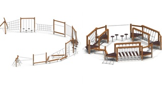В спортивные и игровые комплексы входят различные элементы, соединенные в единую трассу для прохождения. Они рассчитаны на детей до 10 лет.