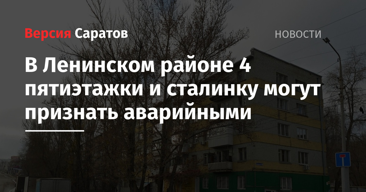 В Ленинском районе Саратова еще пять домов собираются признать аварийными и подлежащими сносу. Торги на техническое обследование конструкций многоквартирных жилых домов на предмет аварийности объявила районная администрация.