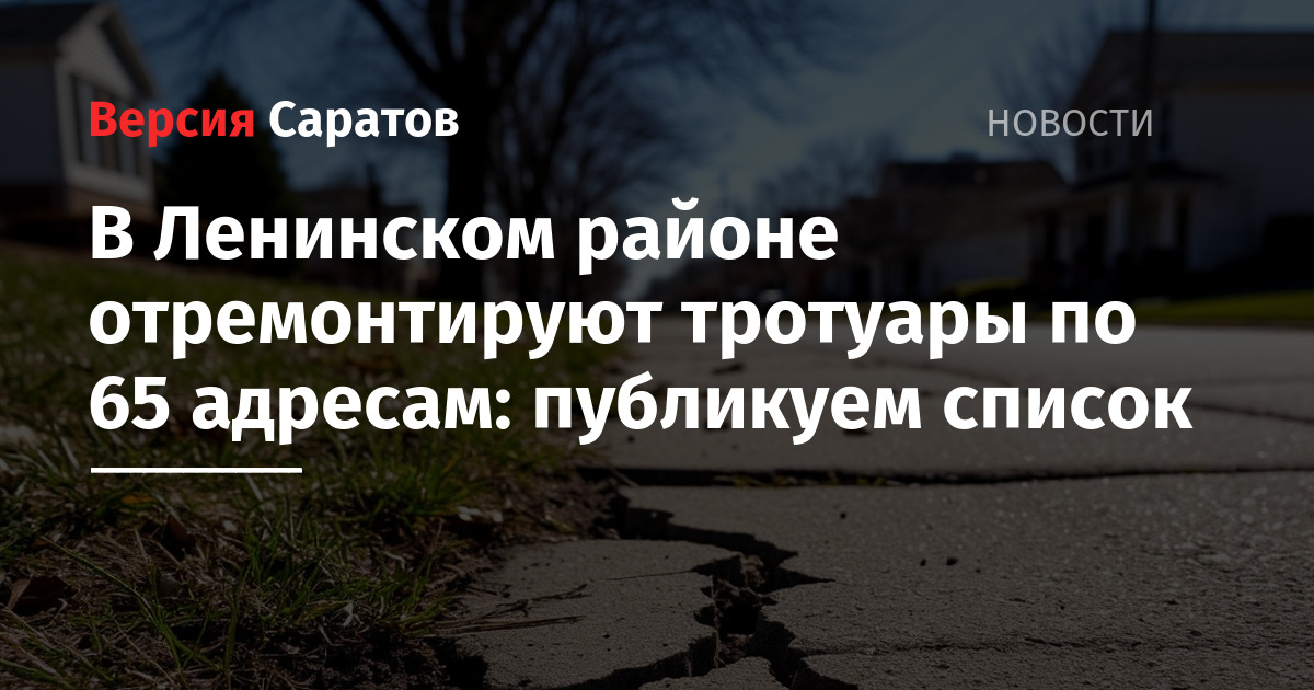 Появился список тротуаров, которые планируется отремонтировать в текущем году в Ленинском районе. Перечень был опубликован в Telegram-канале «Володин Саратов». В список вошло 65 адресов. Публикуем ниже полный перечень: