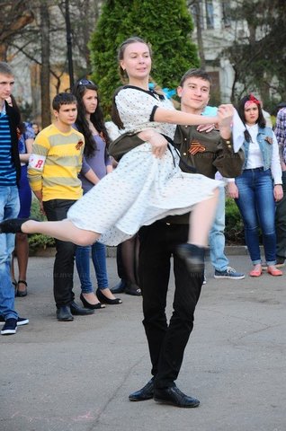 Во вторник, 28 апреля, в преддверии всероссийской акции "Вальс Победы" в саратовском парке "Липки" студенты устроили танцевальный вечер. Профессиональные танцоры из ансамбля СГУ "Гжель" показывали горожанам номера на музыку военных лет. Каждый желающий мог присоединиться к танцу.