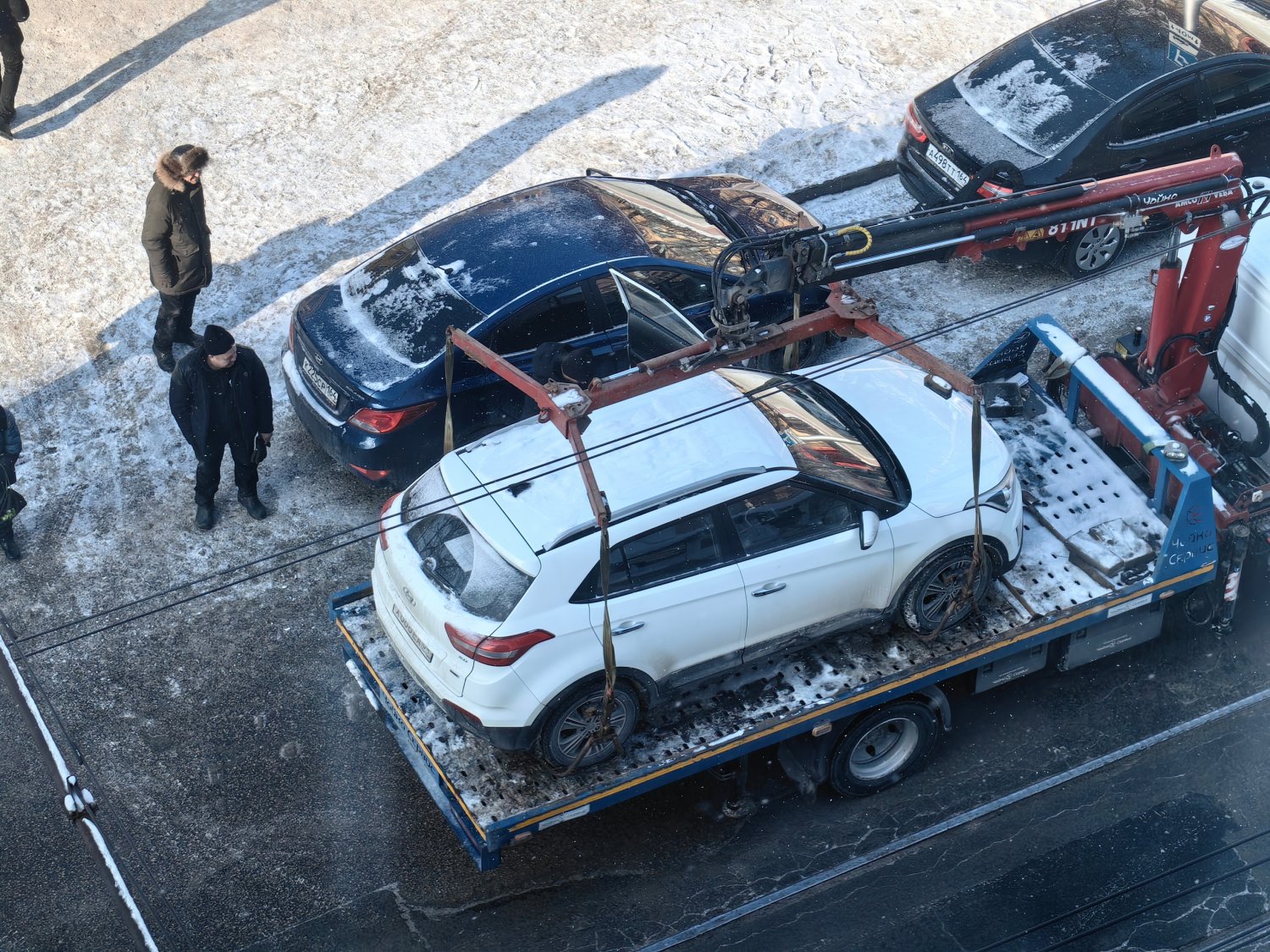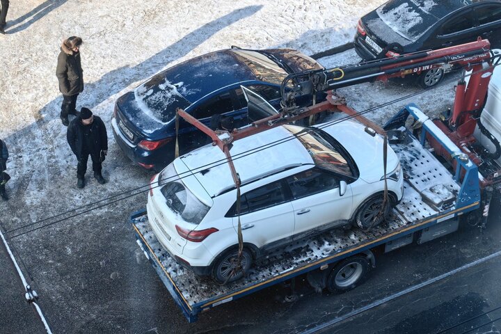 Посреди дороги, рядом с трамвайными путями, стоял эвакуатор, на котором находилась иномарка с водителем внутри. Как так получилось — неизвестно. Водитель погруженной в эвакуатор машины какое-то время не хотел покидать салон. Из-за этого за эвакуатором начала скапливаться пробка и остановились трамваи.