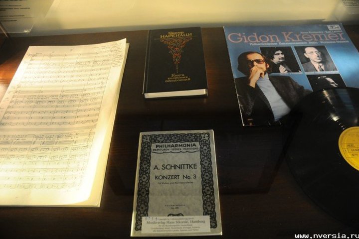 Сегодня, 23 декабря, в саратовском музее им. Радищева открылась выставка "Шнитке/Shnittke", посвященная 80-летию со дня рождения композитора. На ней представлено более 200 экспонатов из фондовых собраний российских музеев и из частных коллекций. Экспозиция состоит из нескольких разделов: библиографическая часть (архивные фотоматериалы и документы); часть, посвященная духовному миру (философские и литературные тексты, мысли и идеи композитора); музыкальные творения автора (музыкальные и камерно-инструментальные сочинения); театральная работа Альфреда Шнитке (афиши, эскизы костюмов, фотографии к спектаклям); личные вещи композитора (книги, иконы, четки, молитвенник). Выставка оформлена мультимедийными элементами на немецком и русском языке. На ней будут демонстрироваться фильмы и проходить концерты.
