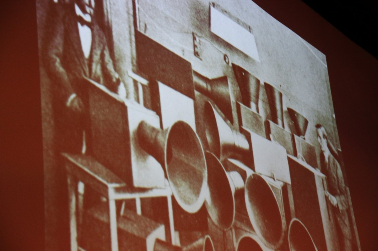 Рассказ сопровождался демонстрацией видеозаписей концертов с необычными музыкальными приборами и прослушиванием индустриальных композиций. Затем участникам лектория предложили поучаствовать в импровизированном концерте. С помощью фена, блендера, мясорубки, миксера и пылесоса они исполнили шумовую композицию. Она стала демонстраций произведений итальянца Луиджи Руссоло.