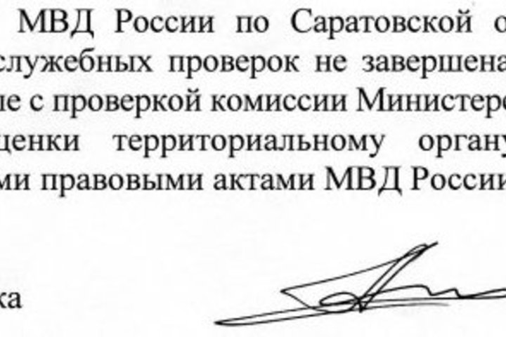 По результатам инспекции ряд сотрудников был привлечен к дисциплинарной ответственности за разного рода нарушения. Часть служебных проверок на сегодняшний день еще не завершена. "Кадровые перестановки, связанные с проверкой комиссии министерства, не планировались", - сообщает Министерство внутренних дел в ответе на запрос ИА "Версия-Саратов". Кроме того, в МВД РФ отказались давать оценку работе саратовского главка, сославшись, что это не предусмотрено нормативными правовыми актами.