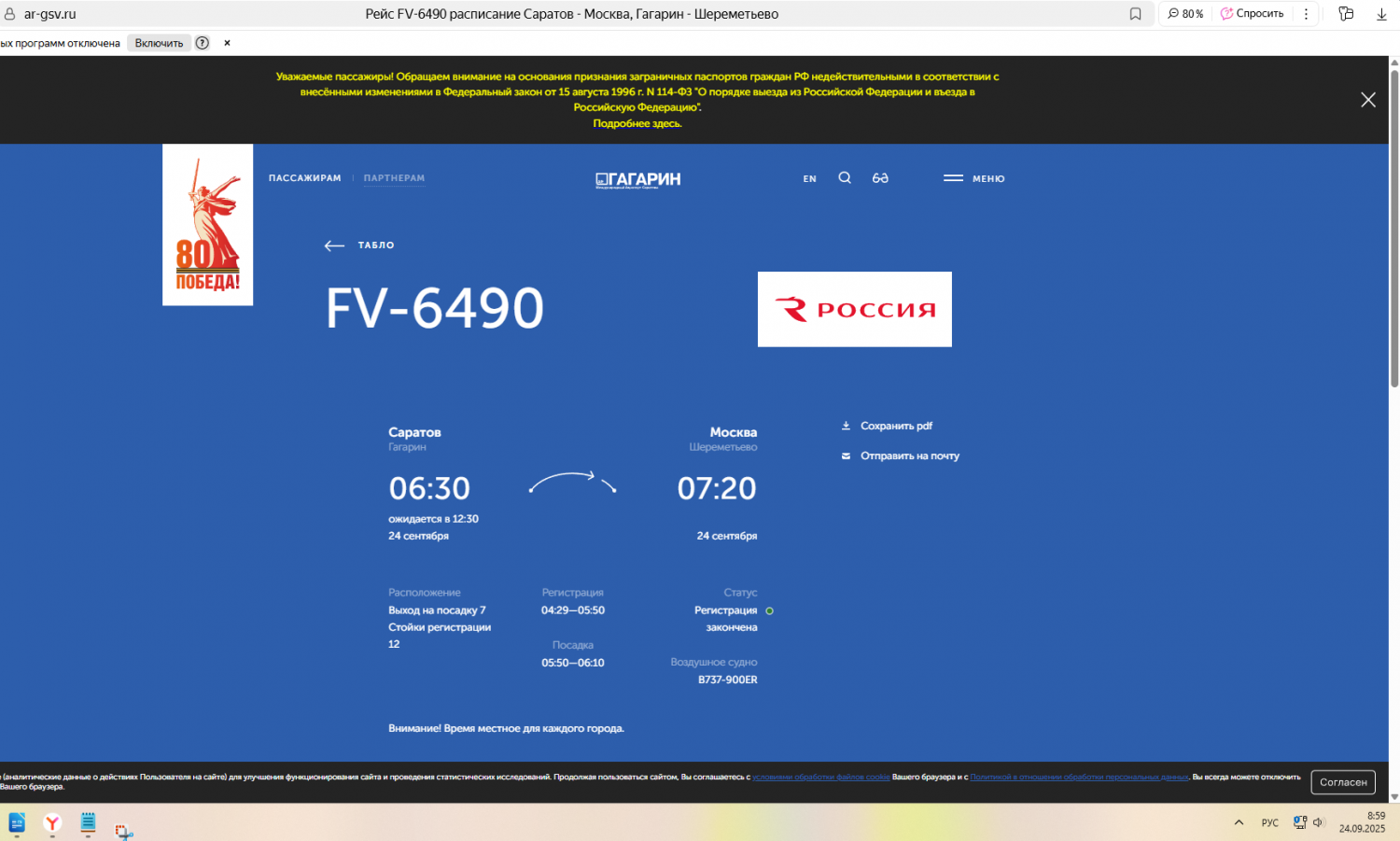 - Аэропорт «Гагарин» перестал принимать и отправлять самолеты
