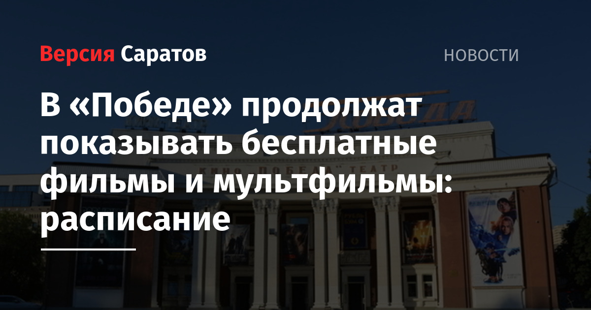 В саратовском кинотеатре «Победа» в следующем месяце продолжатся бесплатные показы фильмов и мультфильмов. Расписание на апрель опубликовали в паблике «Пионера» в соцсети «ВКонтакте».