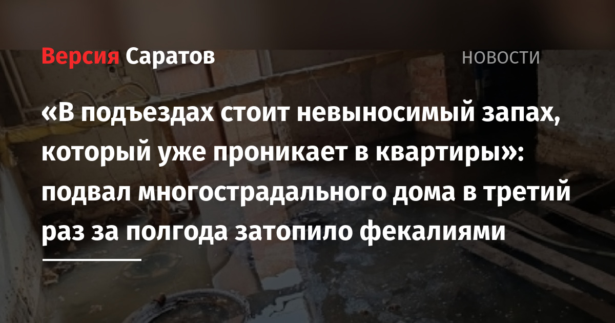 В Саратове вновь затапливает фекалиями подвал дома № 21/1 на улице Муленкова (Волжский район, глава — Татьяна Ерохина). Об этом на портале «Лица» рассказала пользователь под именем Светлана.