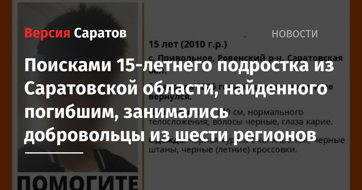 В поисках 15-летнего подростка, которого нашли погибшим в Саратовской области, принимали участие добровольцы из разных регионов. Об этом сообщили волонтёры «Лиза Алерт».