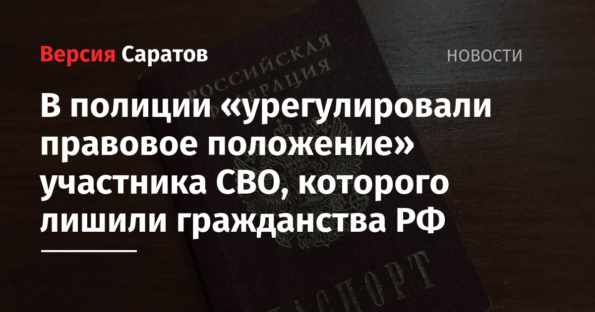 Вчера стало известно, что в Саратовской области участника СВО лишили российского гражданства и признали его паспорт, как российский, так и заграничный, недействительным.