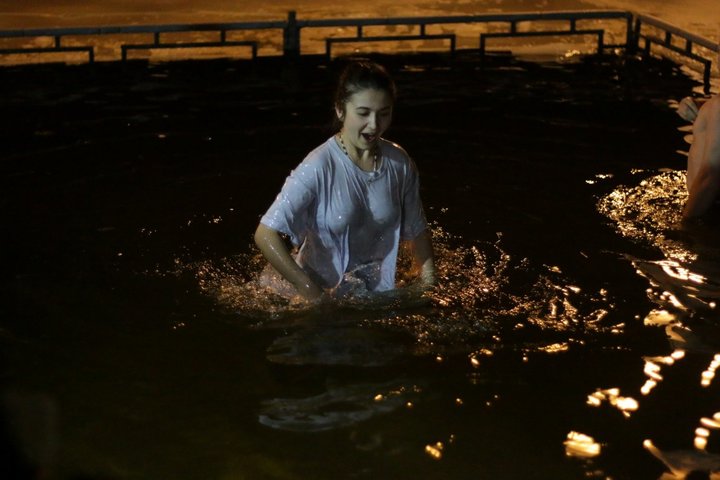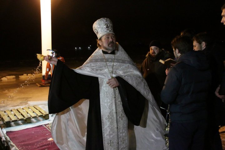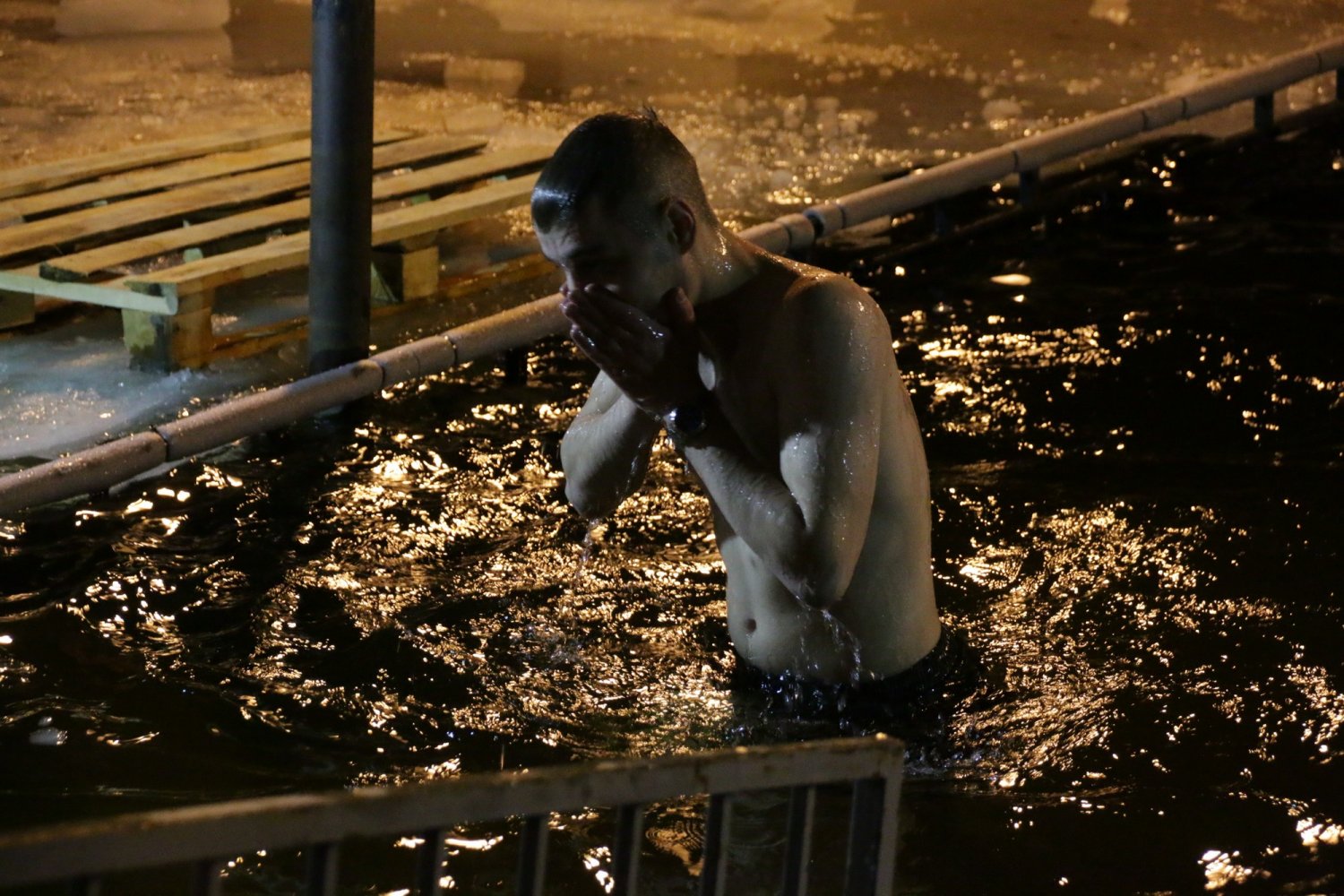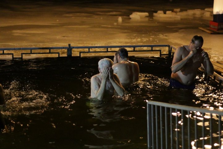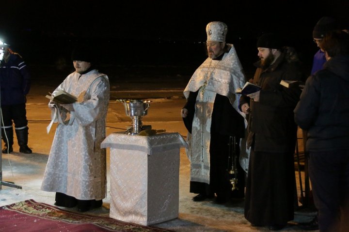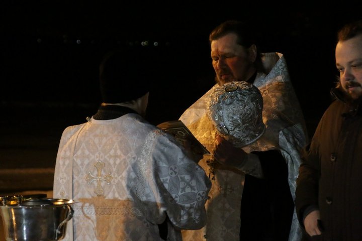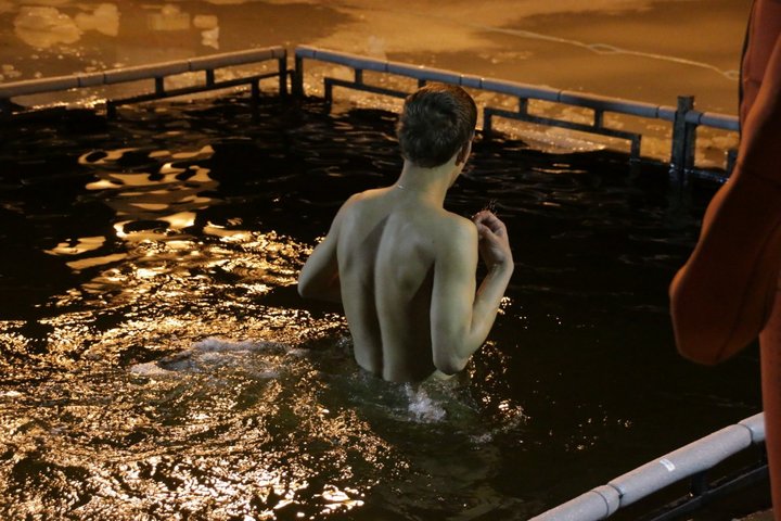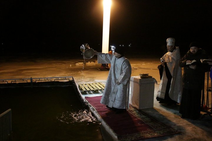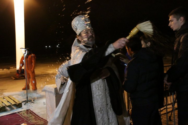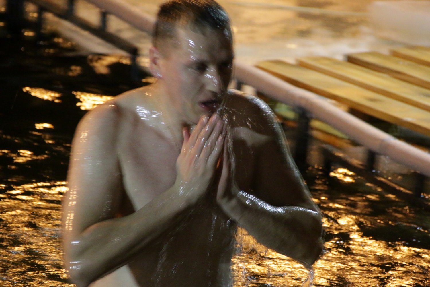 Ближе к полуночи в районе пляжа стали собираться горожане. Прибыли священнослужители, которые подготовили место для церемонии около купели. Они совершили обряд, прочитав богослужебные тексты и окропив всех собравшихся святой водой. Напомнив о библейской истории, священнослужители пригласили всех желающих искупаться в освещенной речной воде.