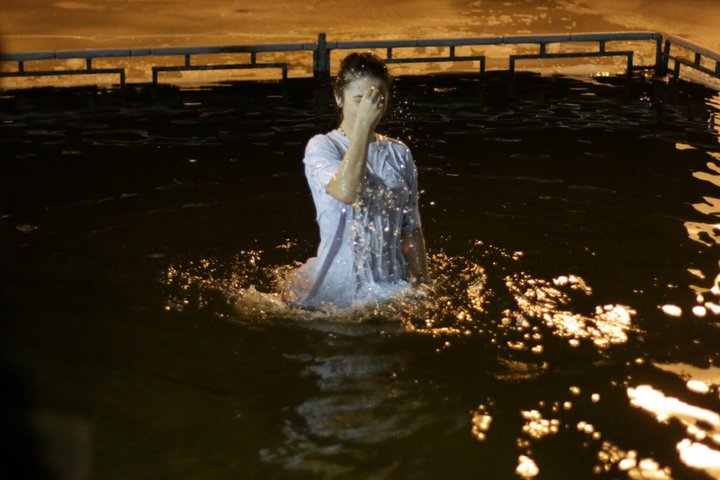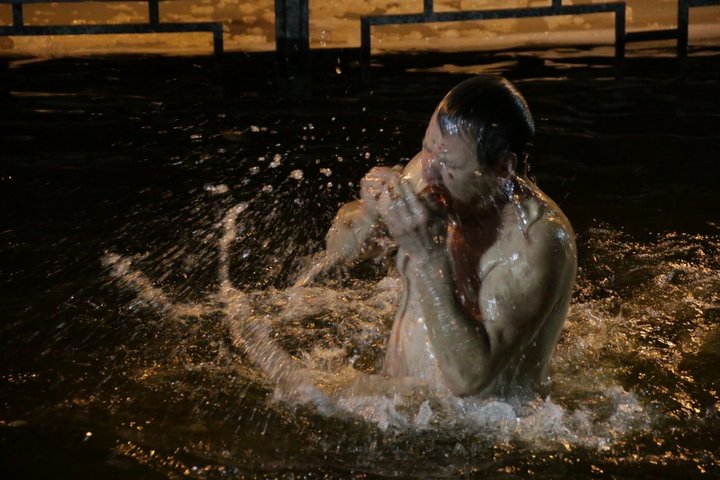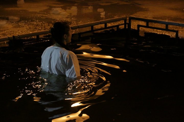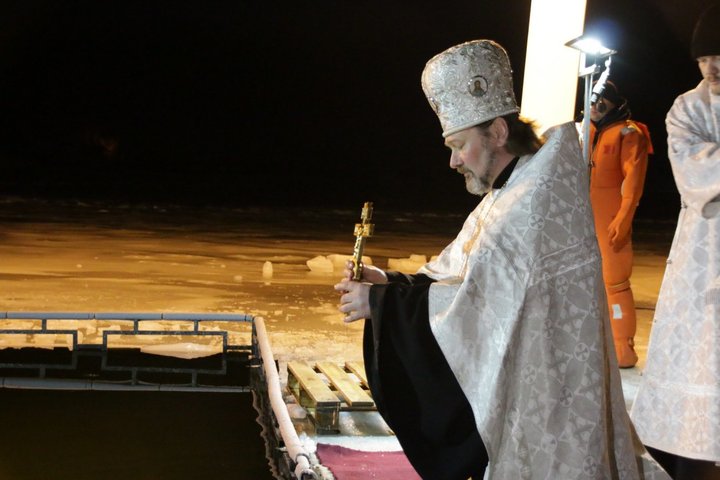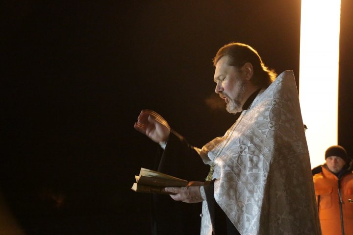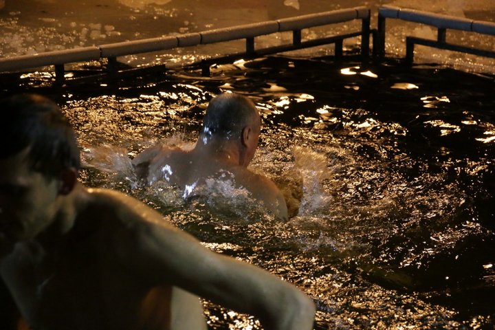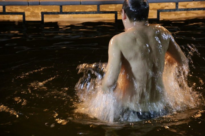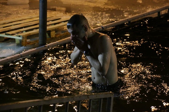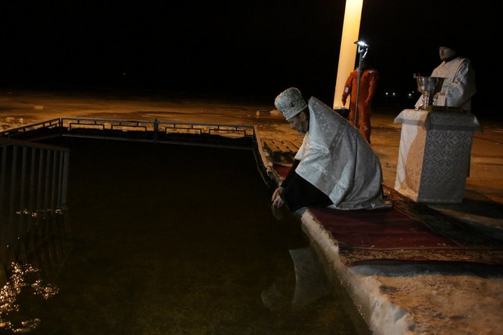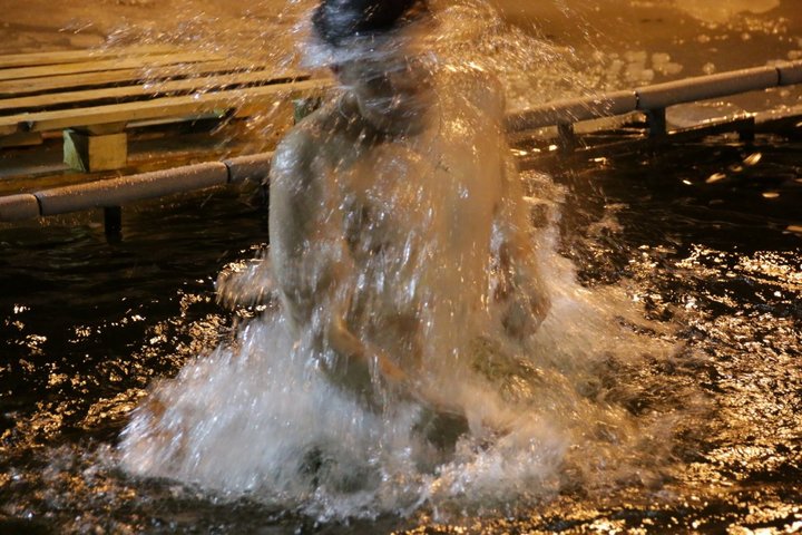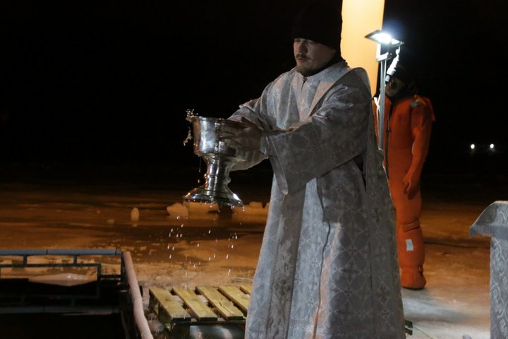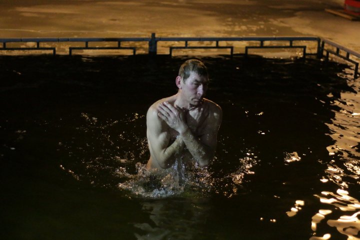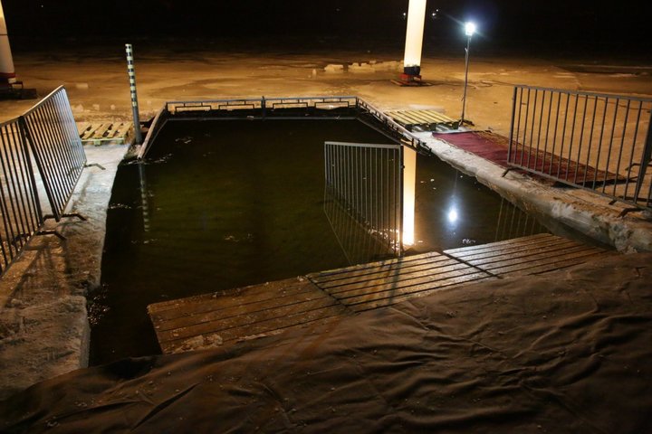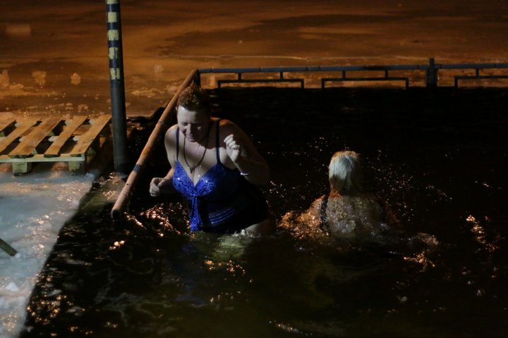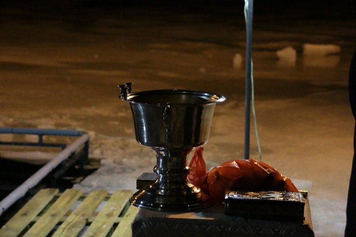 Ближе к полуночи в районе пляжа стали собираться горожане. Прибыли священнослужители, которые подготовили место для церемонии около купели. Они совершили обряд, прочитав богослужебные тексты и окропив всех собравшихся святой водой. Напомнив о библейской истории, священнослужители пригласили всех желающих искупаться в освещенной речной воде.