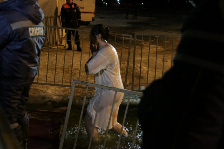 Напомним, чуть ранее горожане собрались на Набережной Космонавтов у ротонды, чтобы окунуться в крещенскую купель.