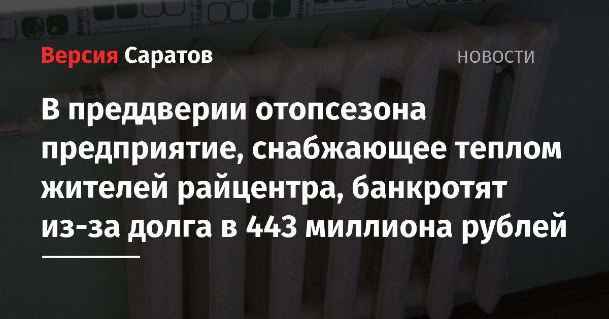 В начале отопительного сезона может обанкротиться МУП «Системы теплоснабжения Балашовского района». Такой вывод можно сделать, если изучить иск, поданный в Арбитражный суд Саратовской области. Муниципальное предприятие отвечает за отопление жилых домов и учреждений соцсферы в Балашове.