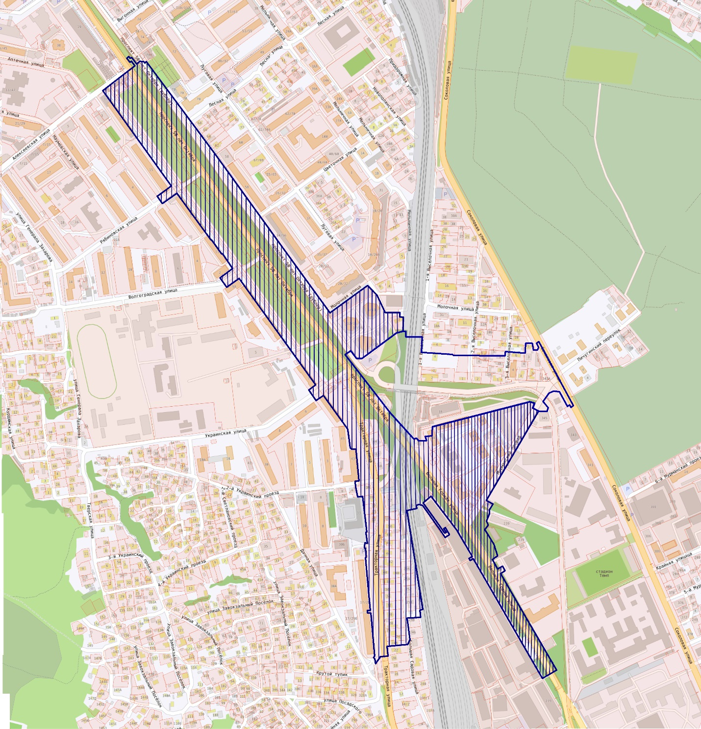 Речь идёт о транспортной развязке на пересечении проспекта 50 лет Октября, Тракторной и Большой Горной в границах территории: Рябиновская, проспект 50 лет Октября, Молочная, Мельничная, Соколовая, Мурманский проезд, Тракторная в Кировском районе. Изменения планируют внести в соответствии с проектом межевания на изображении, приведённом ниже.