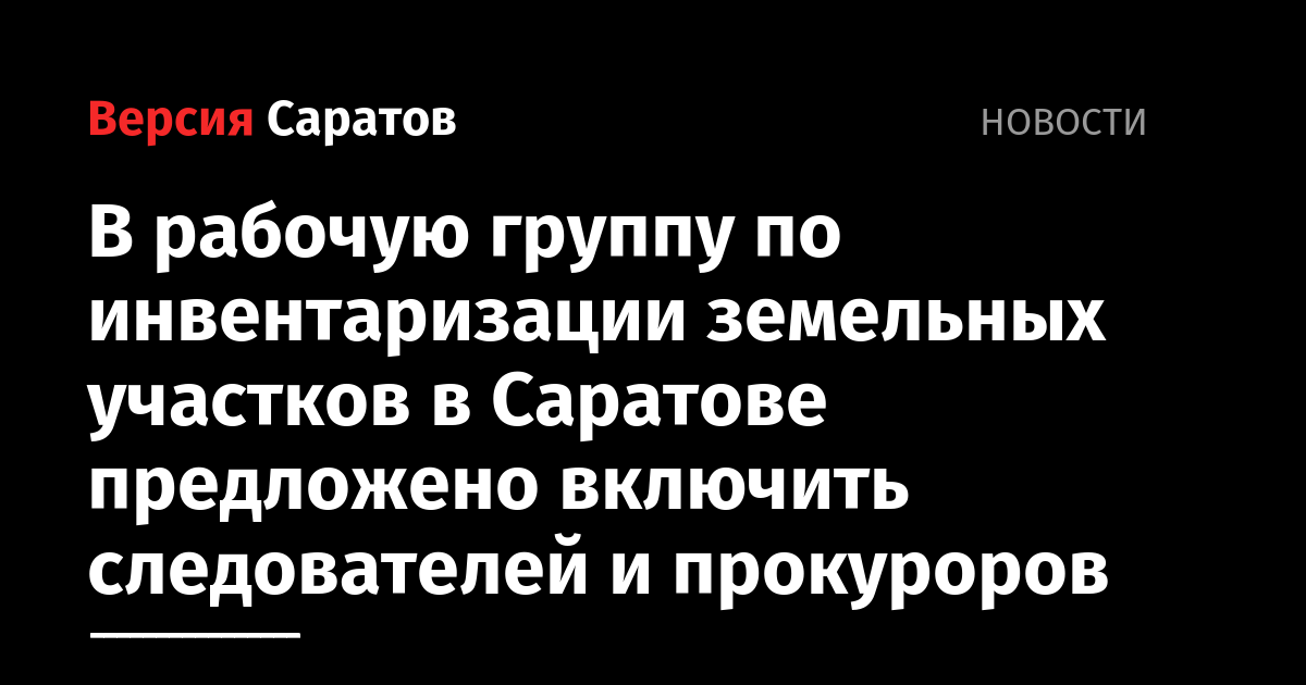 В рабочую группу по инвентаризации земельных участков в Саратове предложено включить следователей и прокуроров