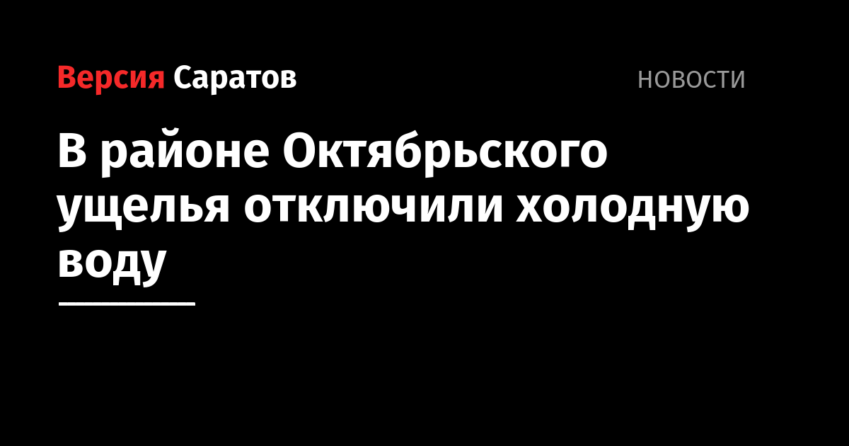В Саратове у жителей Октябрьского ущелья могут наблюдаться перебои с холодным водоснабжением. Как сообщает пресс-служба «Концессии водоснабжения — Саратов», примерно до полуночи проблемы с водой будут наблюдаться доме № 168 на улице Шелковичной, а также домах на 3-м Свинцовом и 4-м Рабочем проездах и на улице Рабочей (от 3-го Свинцового до улицы Свинцовой).