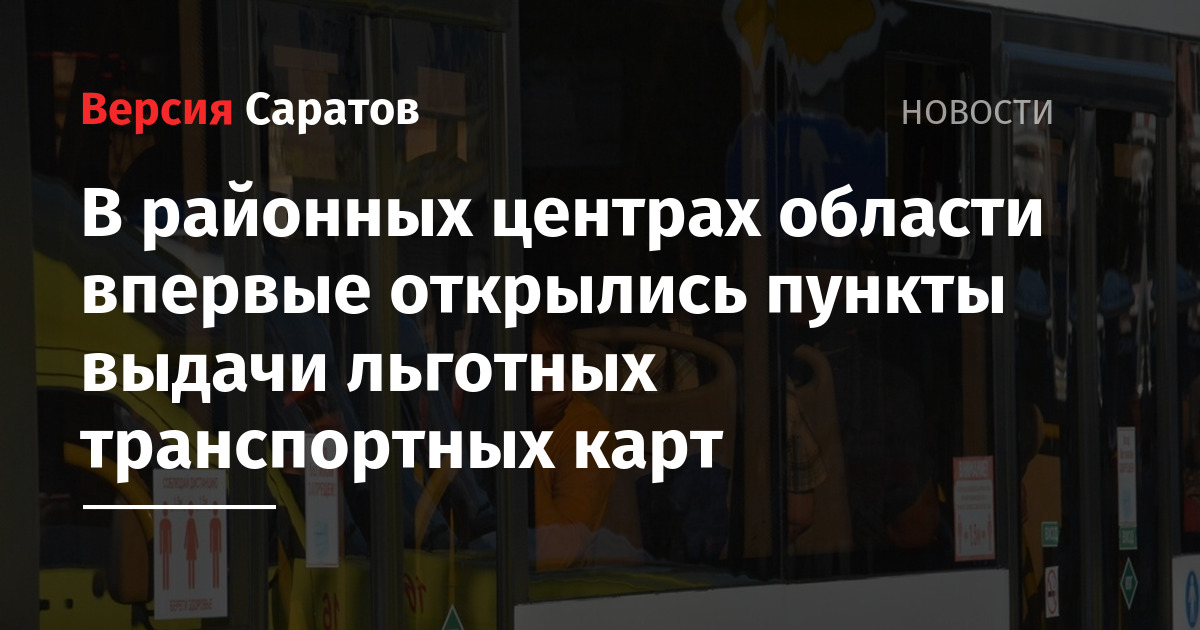 В Саратове появились восемь новых пунктов выдачи льготных транспортных карт. Полная информация о пунктах выдачи представлена здесь.