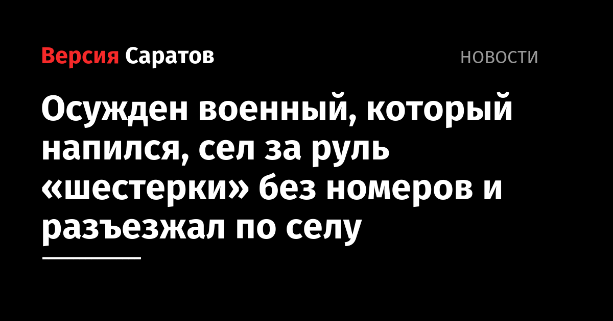 В Саратовской области осудили бывшего военнослужащего по фамилии Сибиряков за езду в пьяном виде. Об этом сообщает пресс-служба Саратовского гарнизонного военного суда.