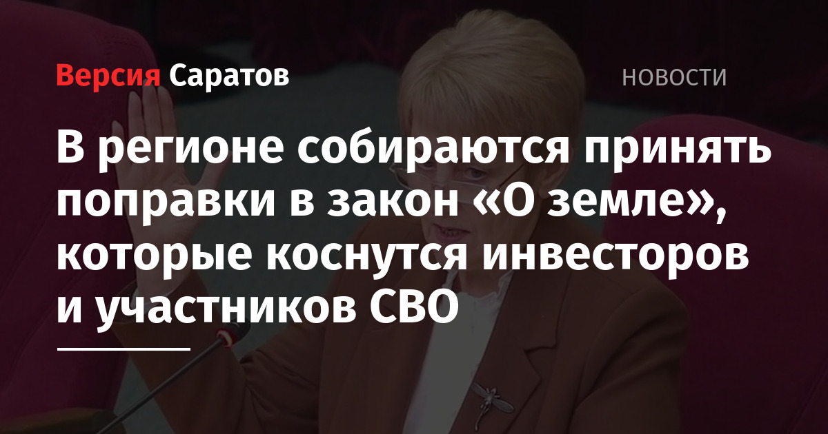 В Саратовской области депутаты предварительно одобрили поправки в региональный закон «О земле», которые касаются предоставления участков без торгов инвесторам и предоставления бесплатных земельных участков отличившимся участникам СВО. Проект законов обсудили сегодня на заседании комитета по аграрным вопросам, земельным отношениям, экологии и природопользованию облдумы.