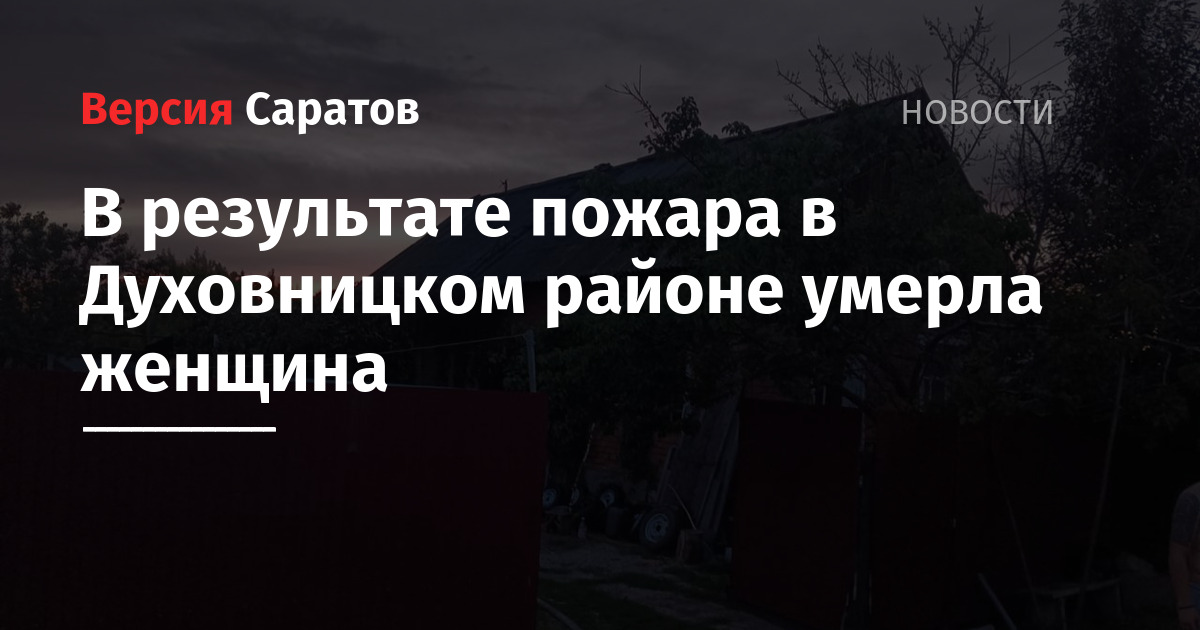 Сегодня, 6 июня, в результате пожара в Духовницком районе погибла женщина. Об этом сообщили в СУ СК по Саратовской области.