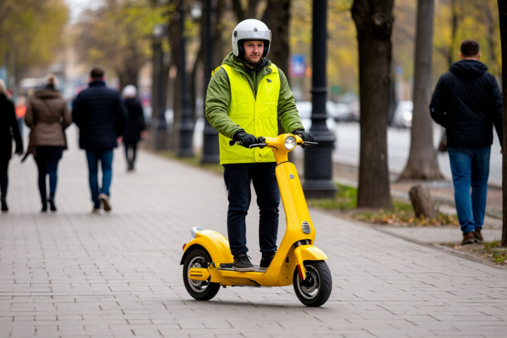 В России хотят запретить курьерам ездить на электросамокатах по тротуарам