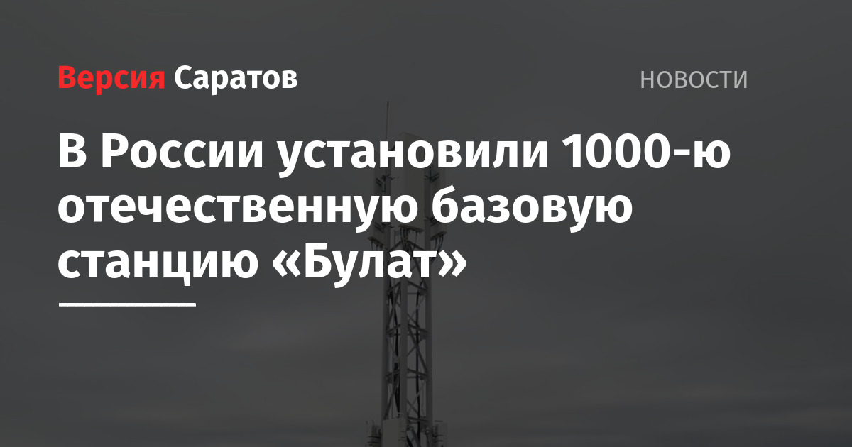 T2, российский оператор мобильной связи, вывел в эфир 1000-ю базовую станцию российского производителя «Булат». Юбилейный телеком-объект установили в деревне Ключи Иркутской области, жителям доступны передовые технологии 2G и 4G. К концу года общее число базовых станций «Булата» на сети Т2 достигнет 1800 единиц.