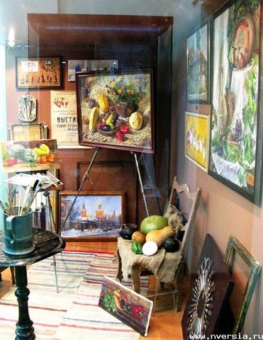 "Поначалу музейщики обещали мне персональную юбилейную выставку в ноябре, - поясняет Николай Дубовов, - а потом сроки сдвинулись и мне предложили присоединиться к данному проекту. Я подумал, ну что там можно сделать особенного? Понятно, что все нарисуют разных "веников", выставят керамику, резные наличники... Оказалось, можно не ограничиваться пейзажами и, кроме стен, в нашем распоряжении есть еще и витрины. Я принес личные вещи родителей, их фотографии и портреты, свои детские игрушки. В итоге получился семейно-краеведческий зал – комнаты матери и отца, реконструкция моей мастерской".