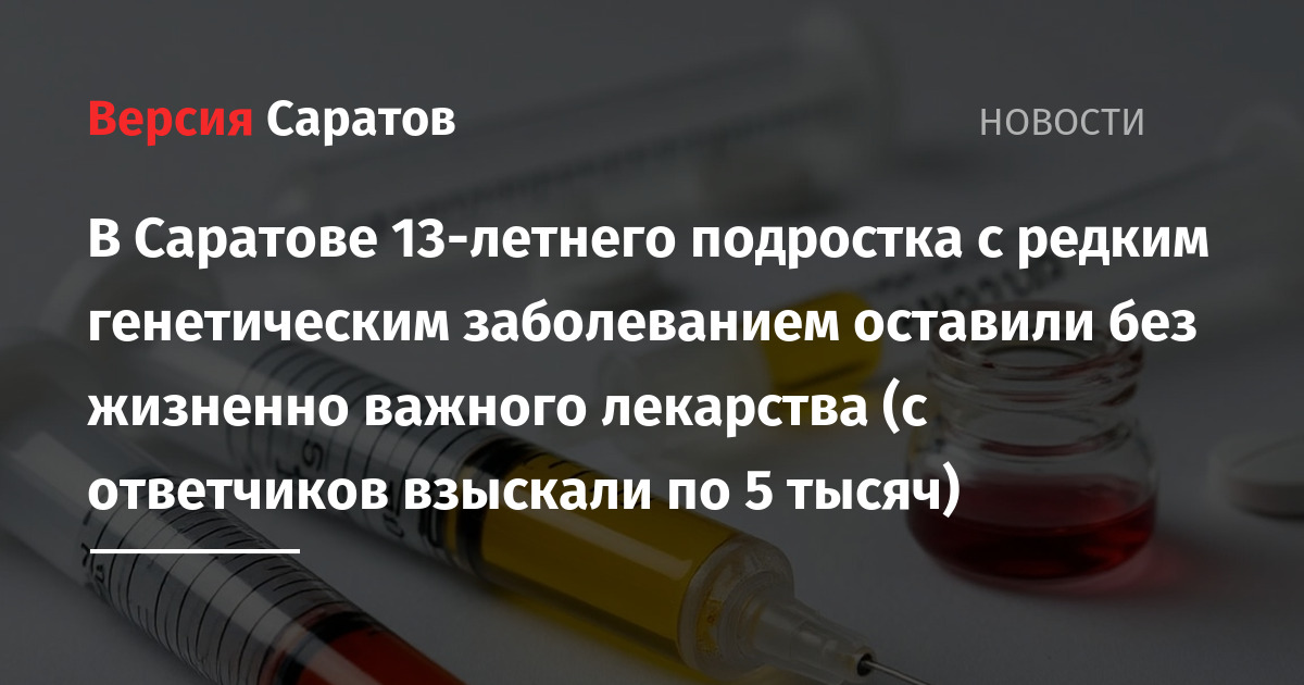 В Саратове 13-летний подросток, страдающий генетическим заболеванием, не получал положенное по закону лекарство. Об этом рассказали в прокуратуре Саратовской области.