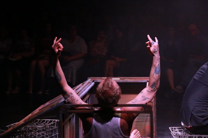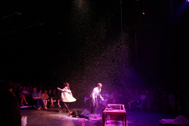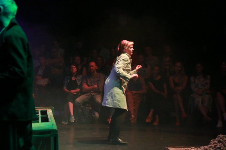 Постановка очень необычная, что можно было понять еще перед спектаклем. В здание старого ТЮЗа на Вольской предложили зайти через боковой, а не через главный вход.  А с первых минут спектакля танцы, чередующиеся со статичными позами, странное поведение главных героев, их немногословные диалоги, очень удачно подобранная музыка, продуманный свет погрузили зрителей в особую атмосферу.
