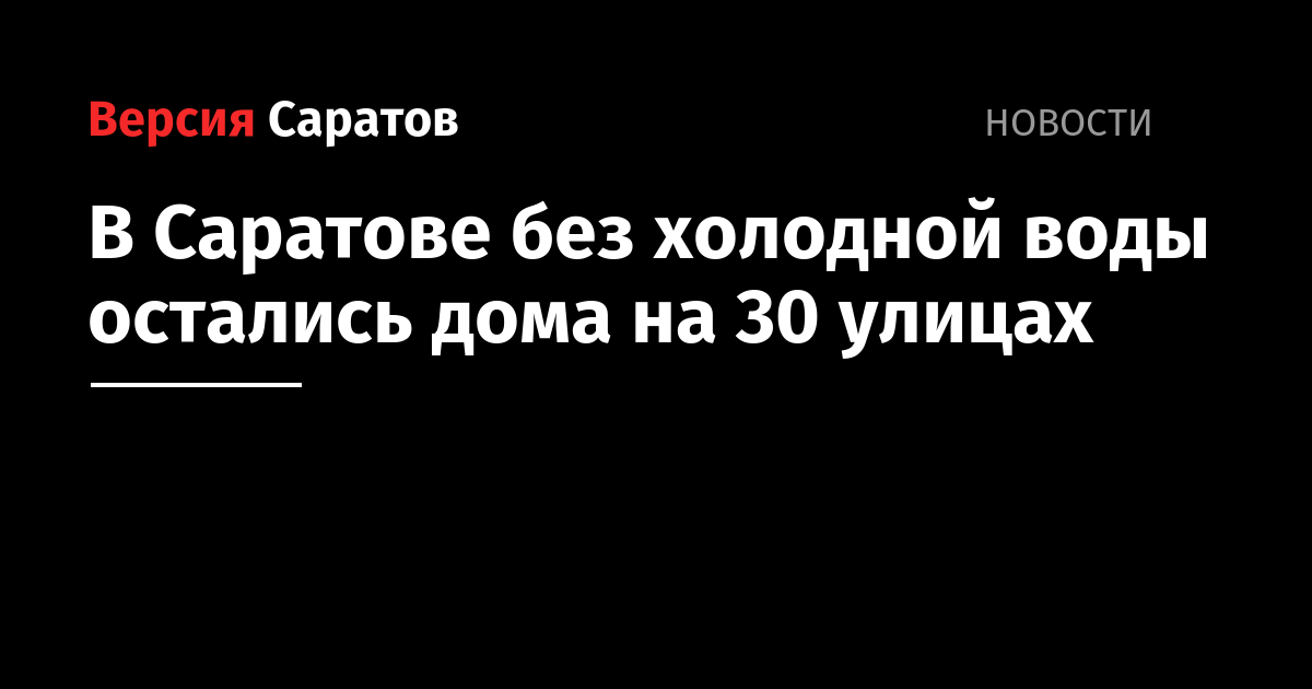 Коммунальщики сообщают о масштабном отключении холодной воды в Ленинском районе Саратова. Так, в зоне отключения оказались дома по следующим улицам: Гусельская (4а, 6, 6а), Гусельский переулок (1-4), Чкалова (27), 1-й проезд Строителей (10,12), проспект Строителей (20), Черниговская (31), Рижская (2а), Песочная (1, 2, 4), Авиационная (40, 42, 44).