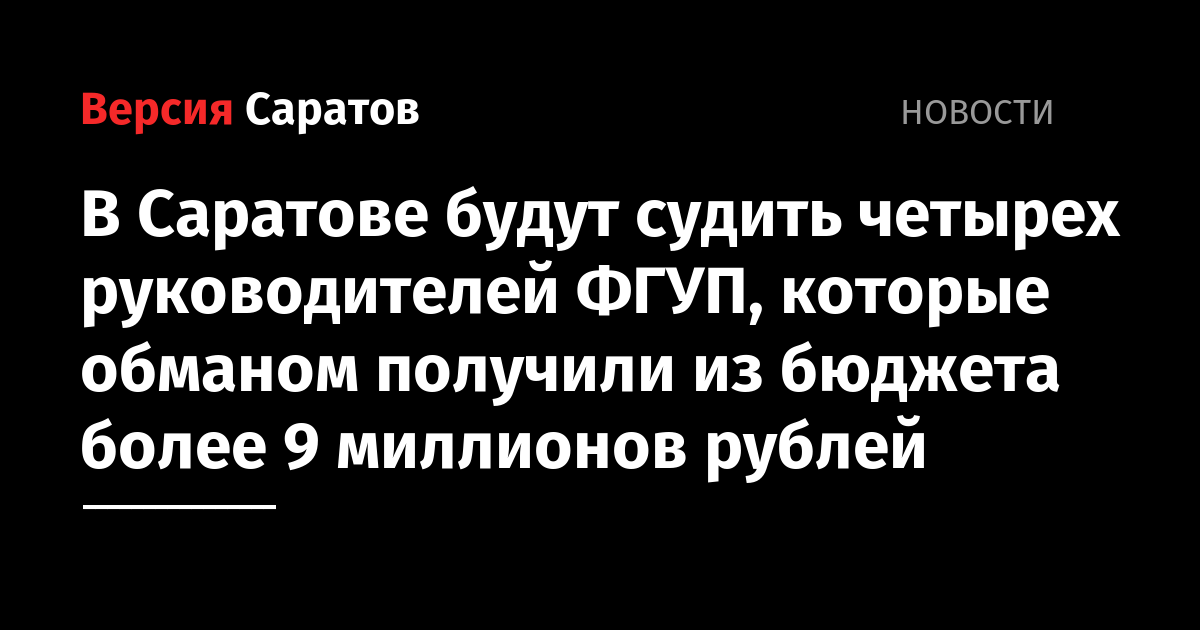 В Саратове будут судить четырех руководителей ФГУП, которые обманом получили из бюджета более 9 миллионов рублей