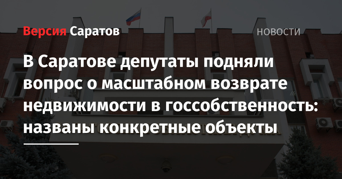 Сегодня, 16 октября, депутаты Саратовской областной думы собрались на совещание на тему «О правомерности приватизации некоторых объектов государственной и муниципальной собственности». Участники заседания решили обсудить конкретные объекты, которые уже возвращены в госсобственность и те, которые, по их мнению, еще нужно вернуть.