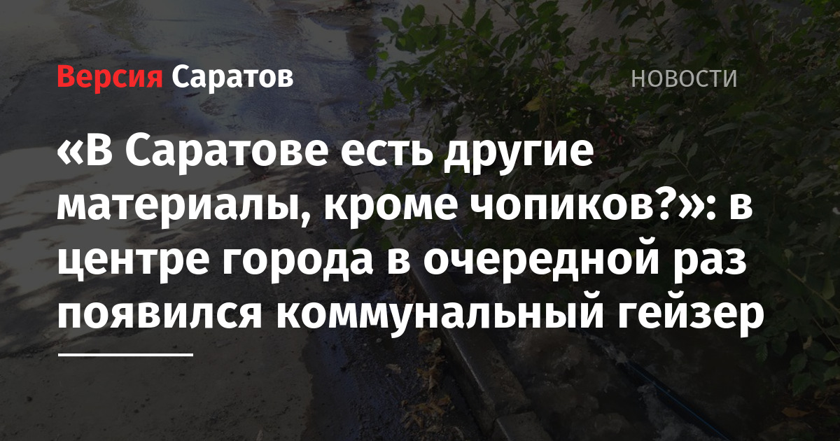 О проблеме сообщают также пользователи в соцсетях. «Река через весь двор. Не прошло и двух недель, как зарыли яму, забив приличное количество чопиков. В Саратове есть другие материалы, кроме чопиков?» — написала в комментариях пользователь под именем Инна.