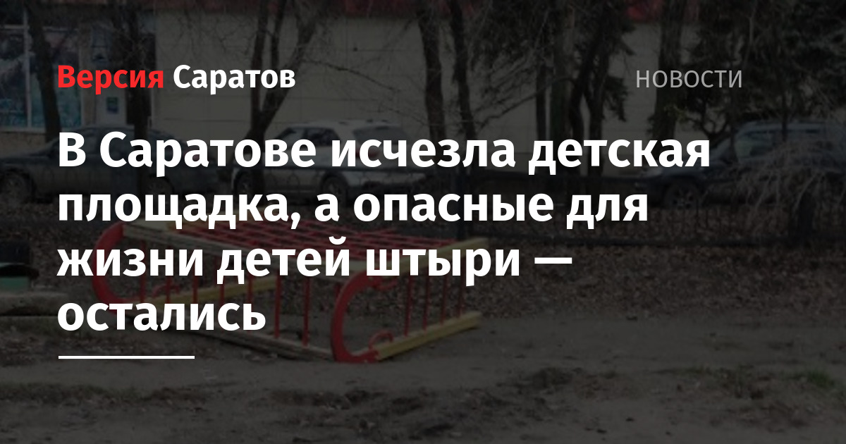 В Кировском районе Саратова (глава — Андрей Марусов) по неизвестным причинам рабочие частично демонтировали детскую площадку. Об этом сообщила местная жительница в чате Telegram-канала мэрии.