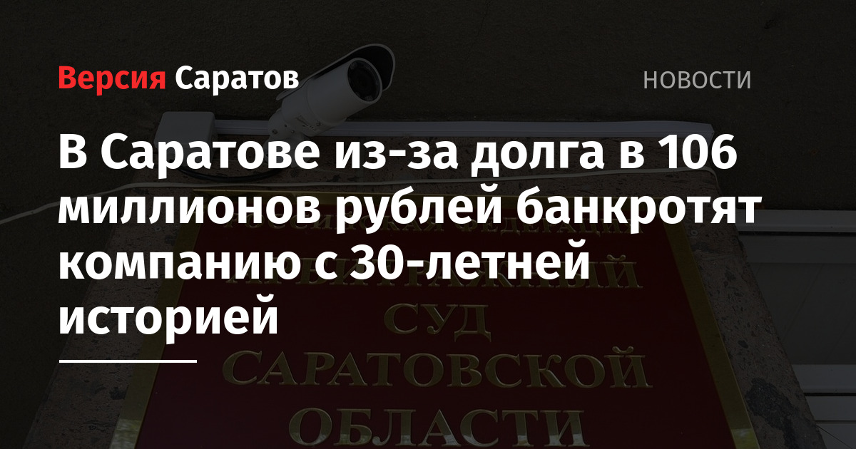В Саратове из-за долга в 106 миллионов рублей банкротят компанию с 30-летней историей