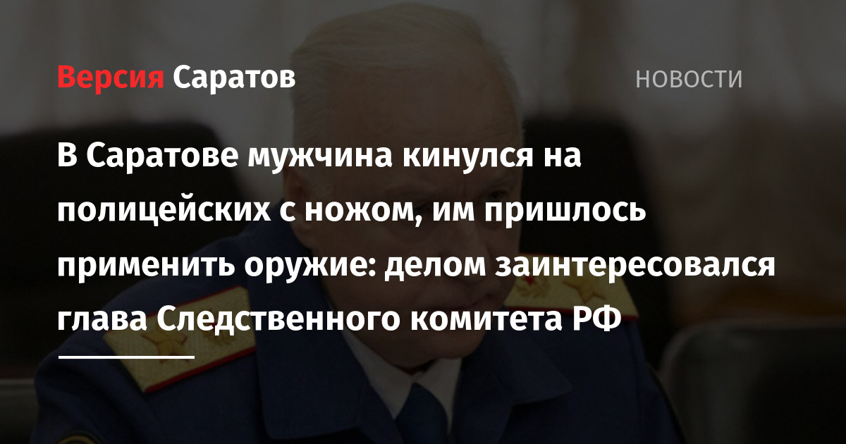 В Саратове мужчина кинулся на полицейских с ножом, им пришлось применить оружие: делом заинтересовался глава Следственного комитета РФ