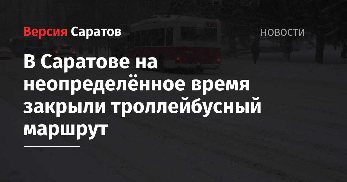 В Саратове на неопределённое время закрыли троллейбусный маршрут. Об этом сообщили в Telegram-канале «Саратов транспортный», закреплённом за администрацией областного центра.
