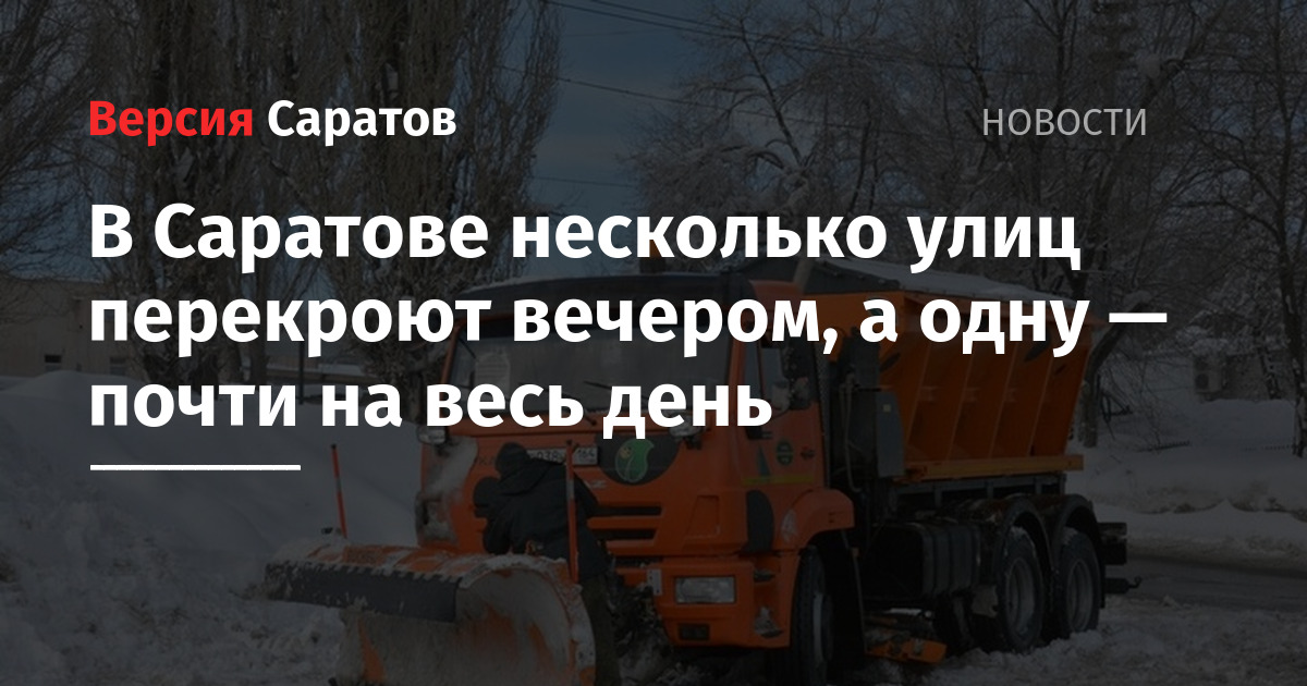 Комитет дорожного хозяйства администрации Саратова сообщает, что сегодня — 4 февраля — в областном центре перекроют несколько участков улиц. По данным чиновников, это нужно для уборки снега.