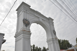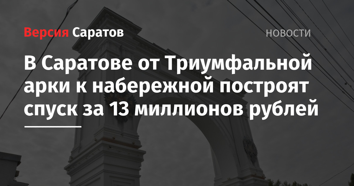Триумфальную арку открыли ко Дню города в 2022 году. Это копия исторического сооружения, построенного в 1871 году к визиту императора Александра II в Саратов, и снесенного в 1920-е годы. После этого никакие работы на месте не велись. В феврале прошлого года были приняты изменения в проект планировки территории, который предполагал продление улицы Радищева до Волги. Это как раз тот самый спуск от Триумфальной арки. На проектируемом спуске также хотели установить памятник адмиралу Фёдору Ушакову.