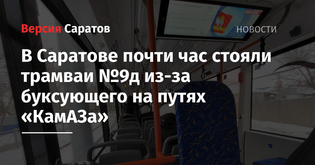 В Саратове сегодня утром было на час прервано движение трамвая № 9д в районе остановки «ул. Усиевича». Как сообщил Telegram-канал «Саратов транспортный», это произошло из-за того, что на трамвайном полотне застрял и буксовал «КамАЗ». В общей сложности движение электротранспорта было парализовано с 8:40 до 9:43 в обоих направлениях.