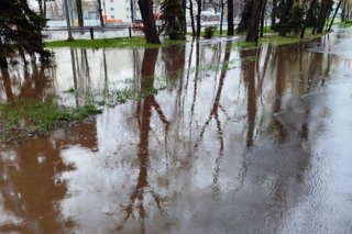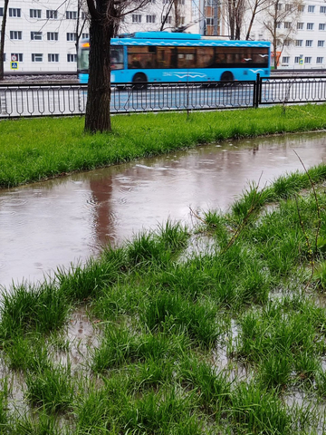 На отрезке от Вишневой от 2-й Дачной в некоторых местах по тротуару невозможно пройти, не замочив ноги по щиколотку. Доставщики носятся рядом с пешеходами, потому что велодорожки затоплены и большими частями превратились в стоячее болото.