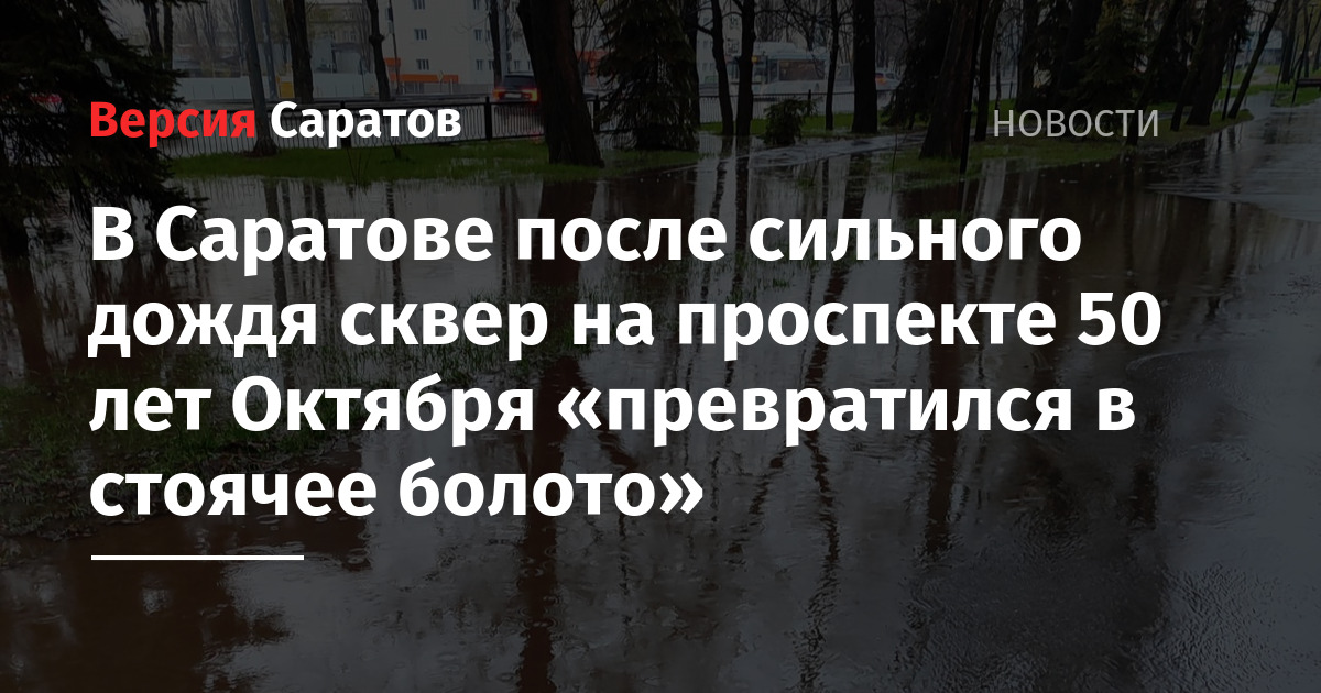В Саратове во время дождя залило сквер на проспекте 50 лет Октября (Ленинский район, глава — Артем Курочкин). На это обратил внимание подписчик Telegram-канала «Остров Саратов».