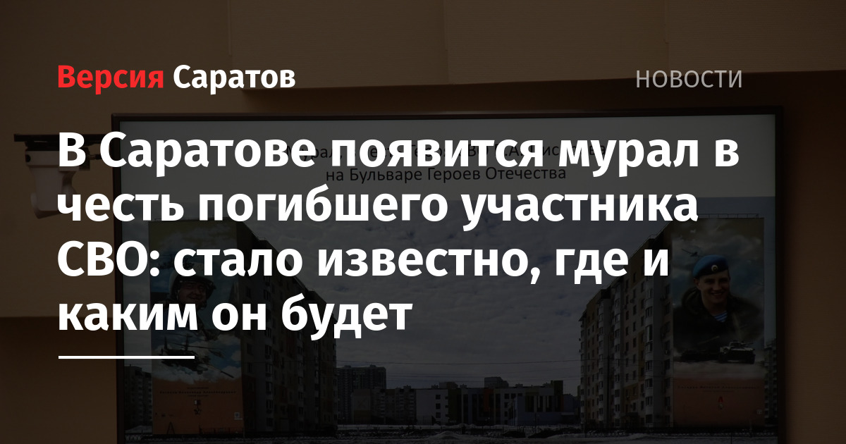 На бульваре Героев Отечества в Саратове появится новый мурал, посвящённый погибшему участнику СВО. Проект утвердили сегодня, 26 марта, на заседании градозащитного совета, которое состоялось в Саратовской областной думе.