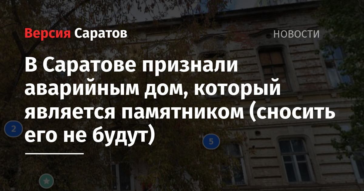 - В Саратове памятник архитектуры местного значения признали аварийным (сносить его не будут)