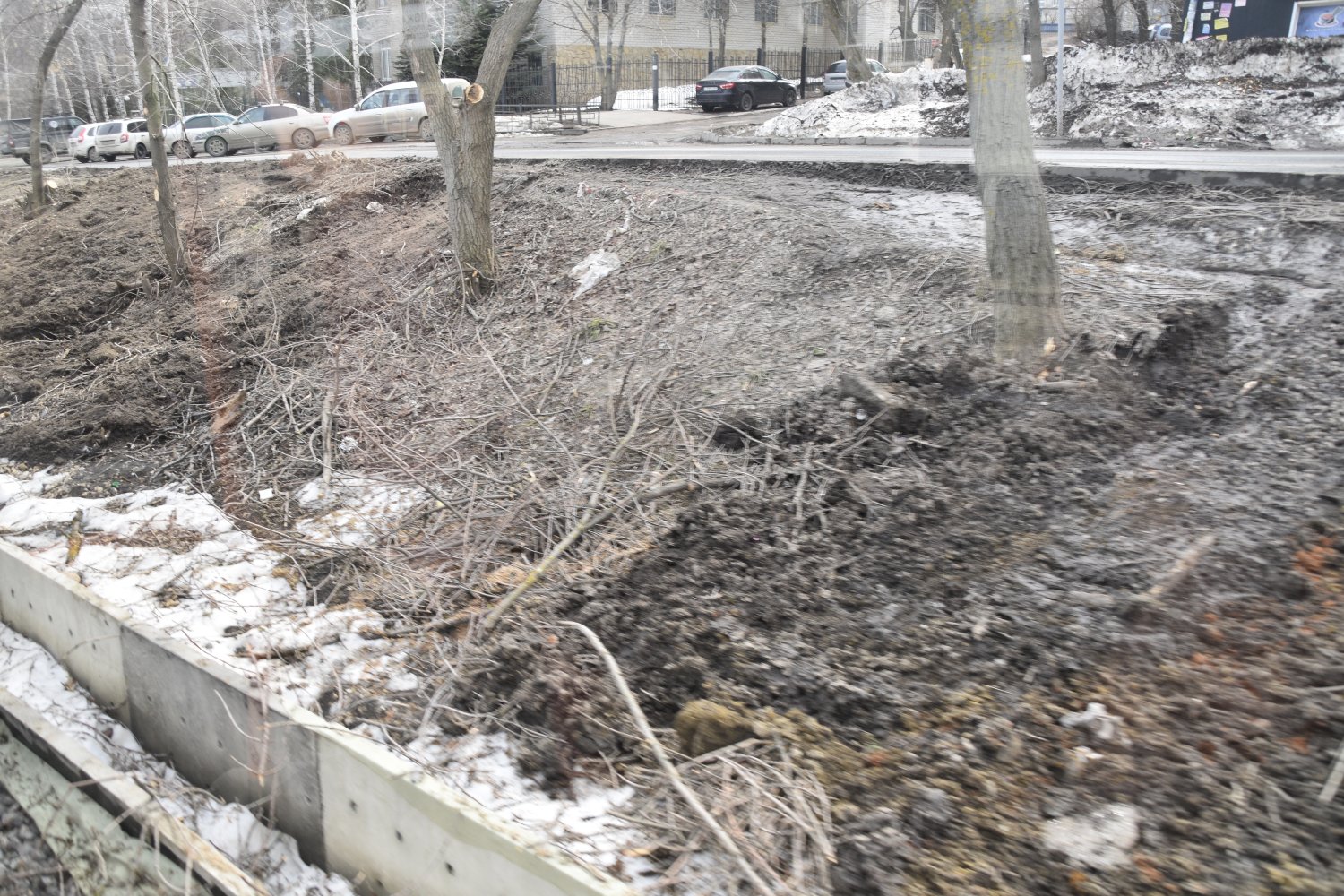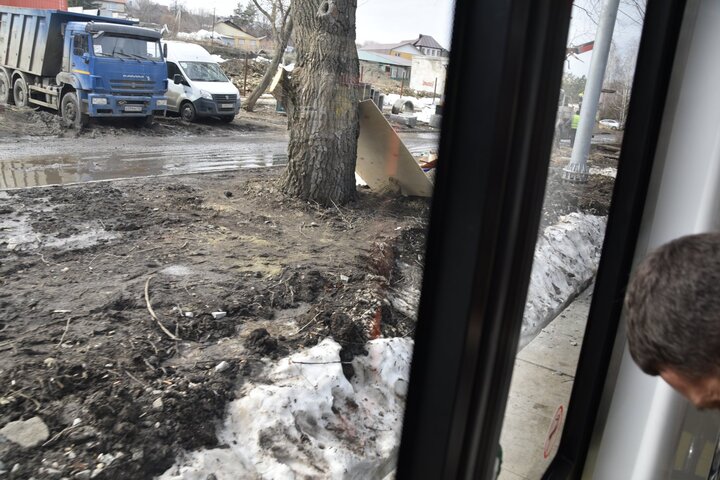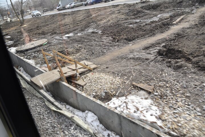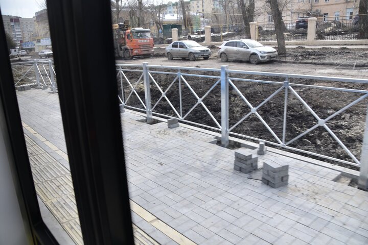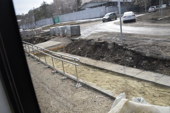 По мере движения трамвая было очевидно, что объем работ по благоустройству прилегающих территорий предстоит огромный. Вдоль маршрута проведена опиловка деревьев, однако на большей его части предстоит ещё сделать очень многое.