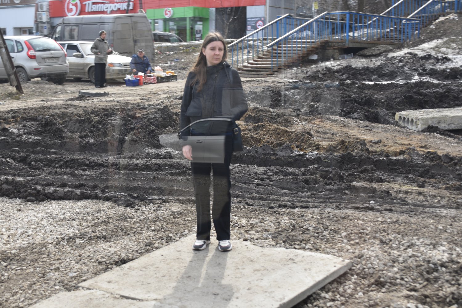 Горожане с интересном смотрели на проезжающую мимо «тройку». Многие останавливались ради неё. При этом перейти через пути пока проблематично: пешеходам приходится пользоваться хлипкими деревянными мостиками.