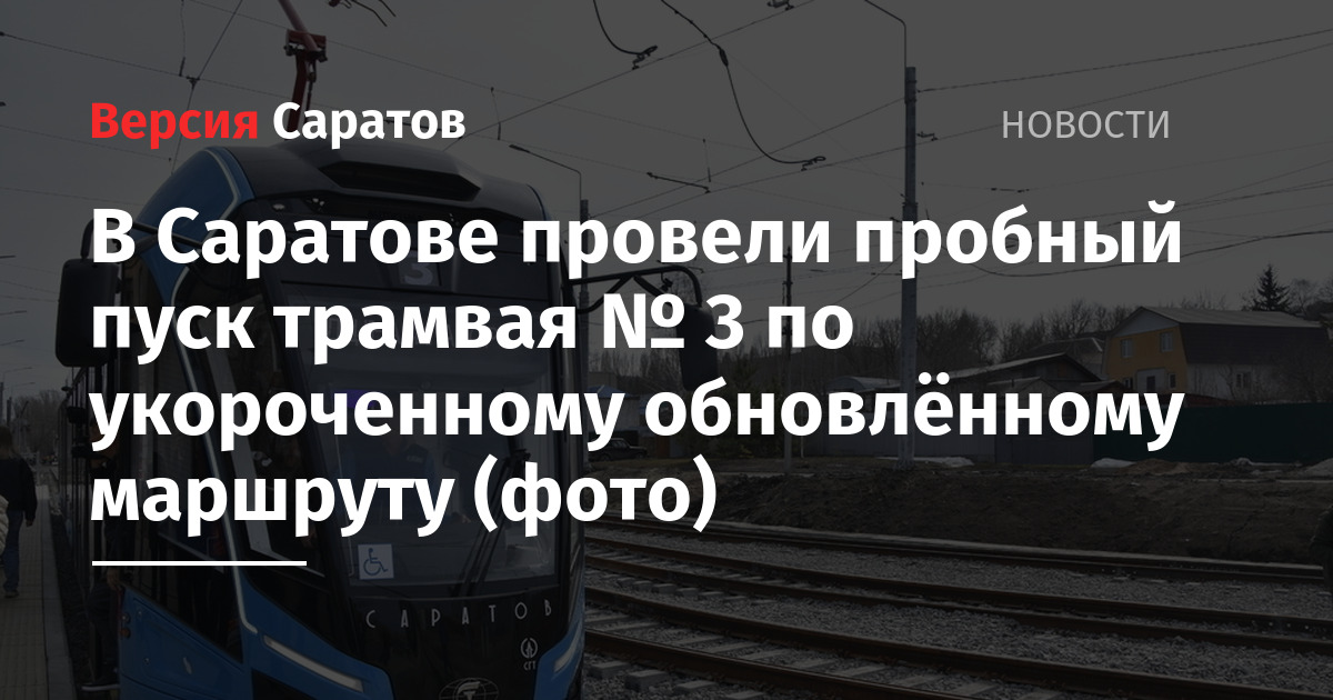 - Названа дата запуска движения по укороченному обновленному трамвайному маршруту № 3 в Саратове