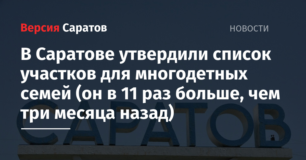 Напомним, в начале 2026 года в Саратове комитет по управлению имуществом городской администрации представил многодетным семьям список, в котором было всего 10 земельных участков. При том, что очередь на них превышает семь тысяч человек. Подробнее об этом можно почитать здесь.