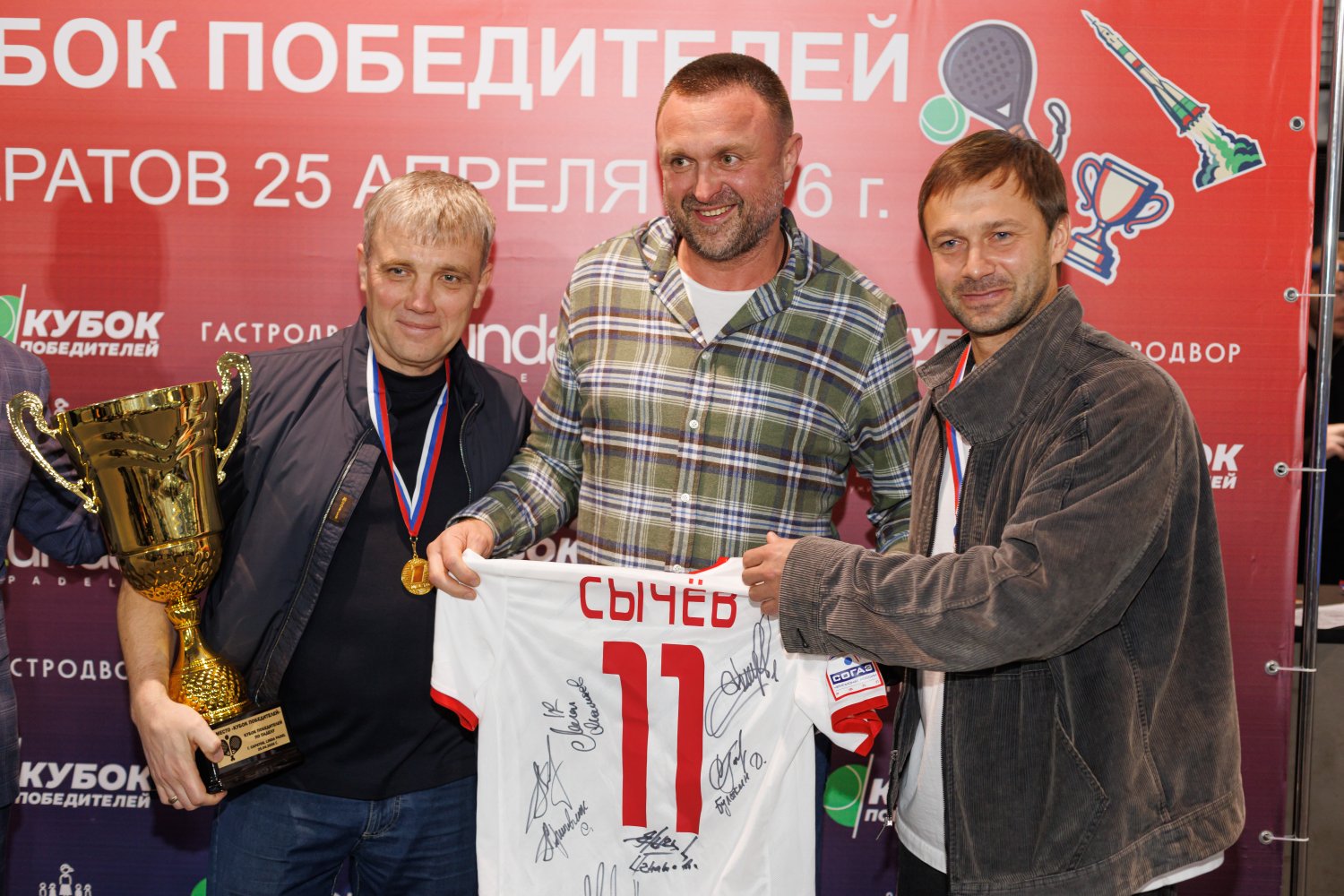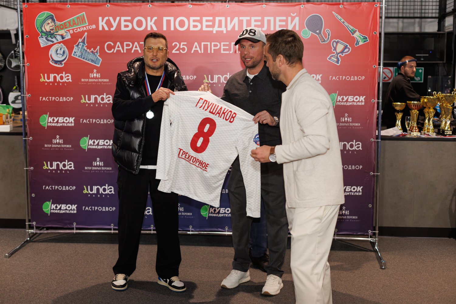 В минувшую субботу, 25 апреля, в Саратове состоялись «Чемпионат победителей» (по футболу) и «Кубок победителей» (по паделу), организованные фондом «Ветер перемен». Днём звёзды российского спорта сыграли на стадионе «Авангард» с юными футболистами. А вечером, разбившись на команды по два человека, сразились в турнире по паделу — популярному ракетному виду спорта.